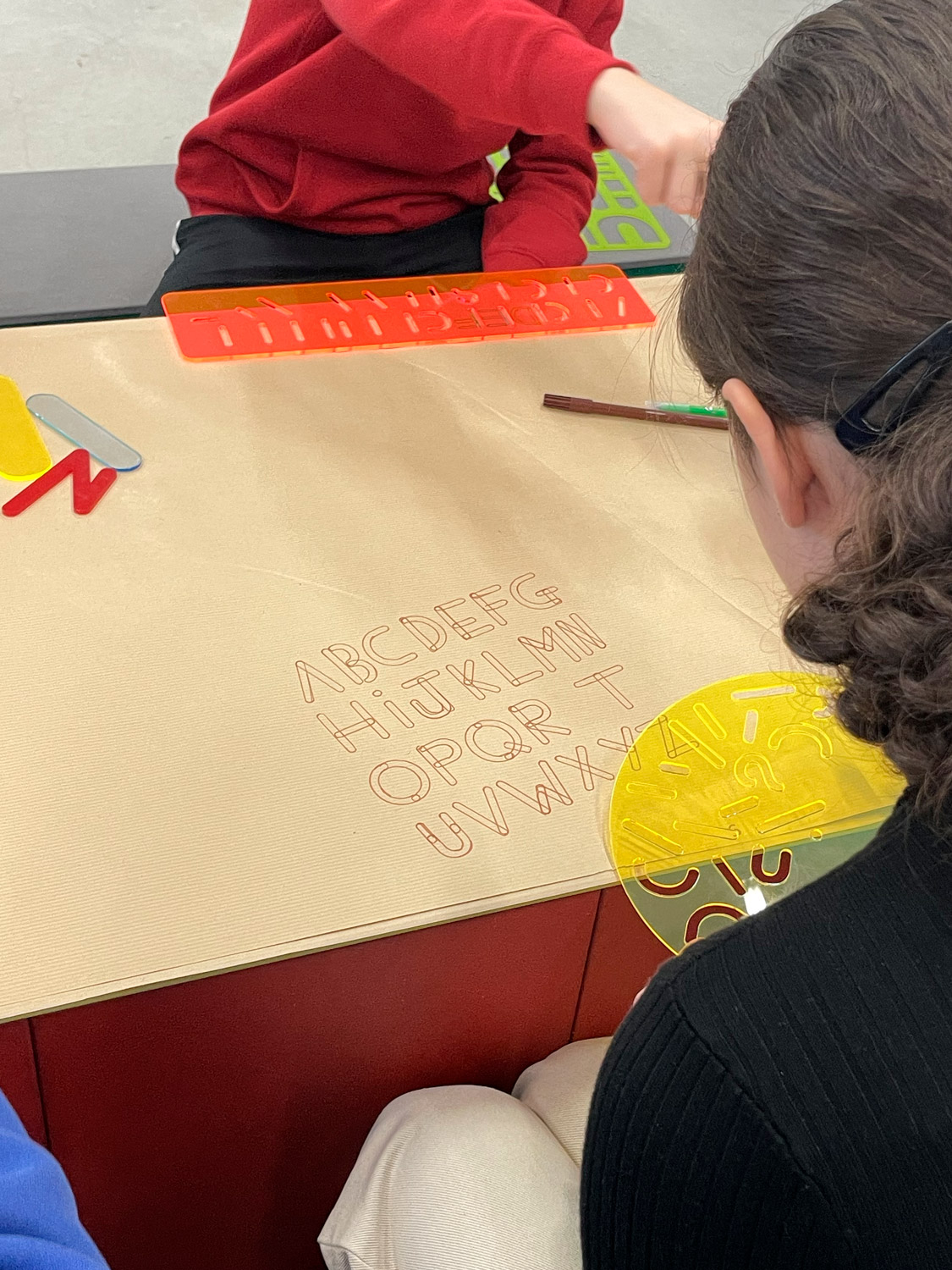 Une fois les deux groupes séparés on a visité l’école pendant que l’autre groupe apprenait d’où venait l’écriture et ses différentes formes puis ils ont ensuite dessinés leurs prénoms. Après que chaque groupe ait fini, les groupes ont échangé pour visiter l’école et l’autre pour apprendre l’écriture et faire l’atelier prénom.