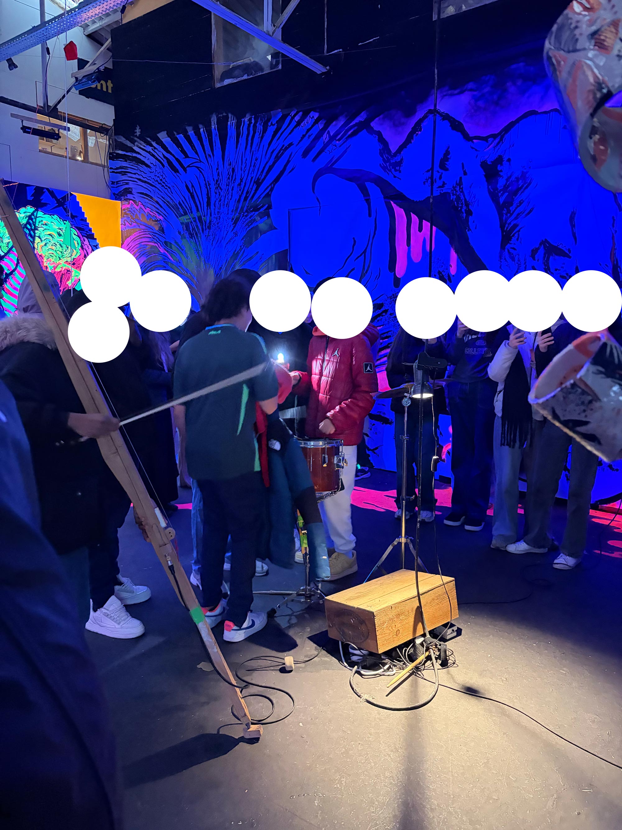 On a pu lui poser des questions sur son travail et comment il crée ses œuvres. À la fin, on a même essayé des instruments qu’il avait fabriqués et on a fait un petit concert tous ensemble.